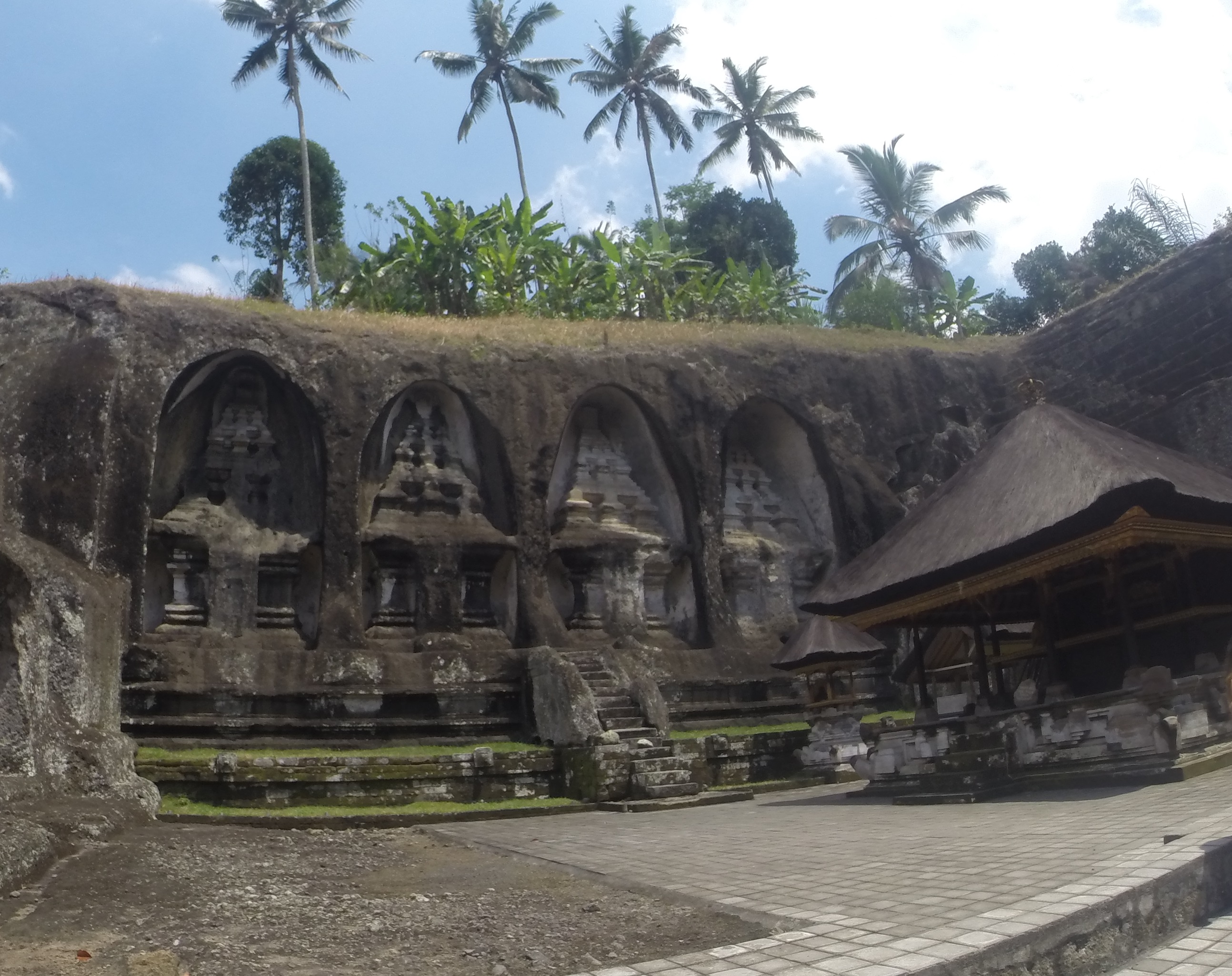 From there we drove further north and came to Gunung Kawi. This is temple where there are huge shrines carved into the mountainside on each side of a valley. The shrines are about 7 meters high, and quite massive. It was a bit of a walk down in the valley, and it was hot! It was absolutely worth the trip down, ’cause we were taken aback when we saw the size of the shrines. All these temples are quite well preserved, which I imagen is rather hard in this climate. With the heavy rain several months a year probably taking it’s toll on this. This temple was built in the 11th century probably to honor king Anak Wungsu. A King we all know, right? 😉