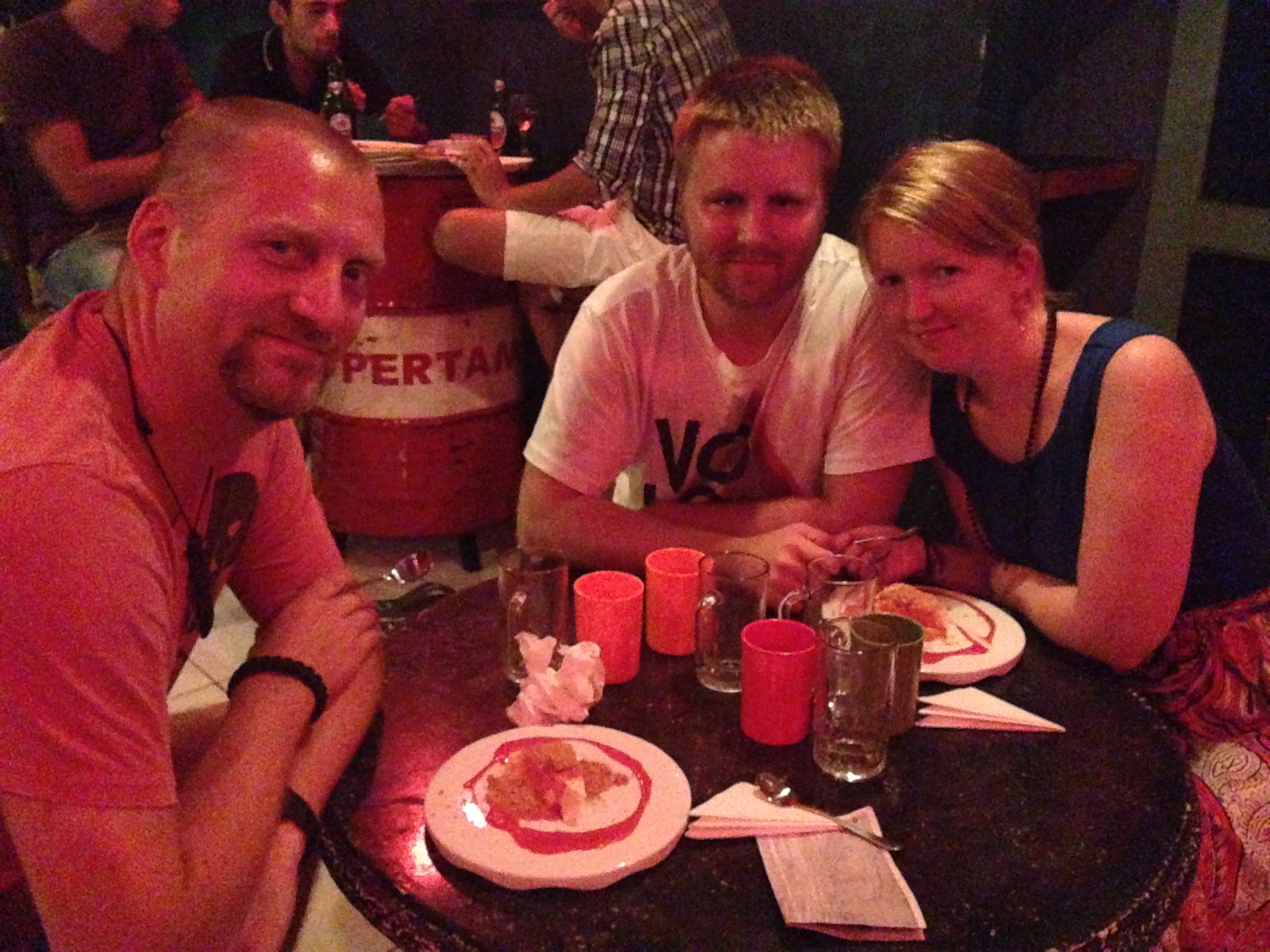And regarding dinner – Last night we had a very nice dinner with a couple of Norwegians here in Ubud. There have been little Norwegian to be heard around here, but Ida practice Yoga together with us. We dined with them last night, and met Espen who is working as a programmer for a company back in Norway. They have been moving around the world since November last year, and will keep it up for a few months more. So cool. We ate at a place called La Ramona. Now rated (on TripAdvisor) as the number 1 restaurant i Ubud. It’s hard to keep up with the demand and number of clients when you rank so high, but the chef did an excellent job and produced amazingly good food. We talked with him when we left the place, as Ida and Espen have met him on several occasions before. He is a one-man-show in the kitchen, and I just tip my hat to him for that. We’ll go back there another day, for sure.
