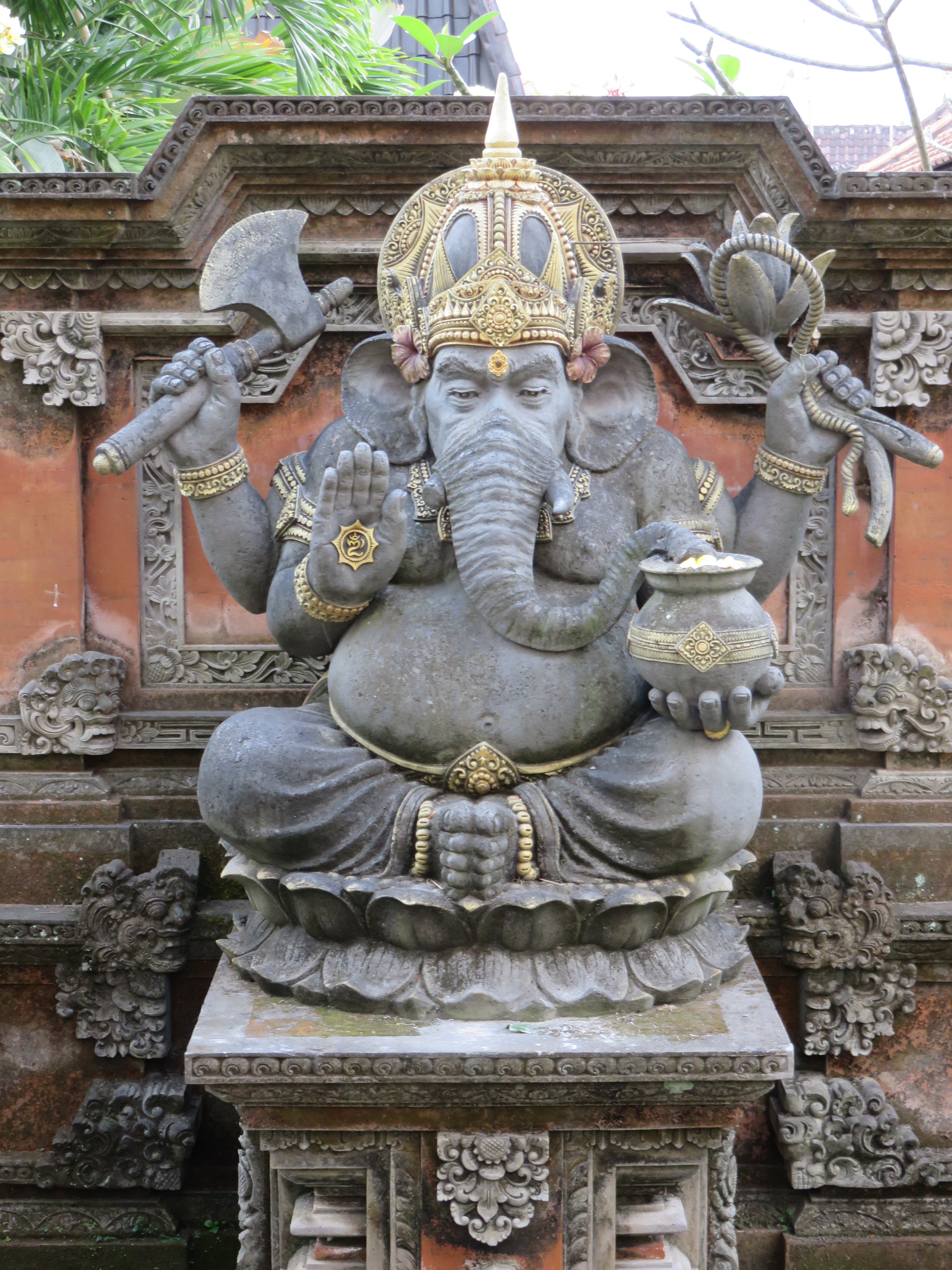 All over Bali you will find the figure of Ganesha. With his elephant head he is very visible and easy to spot. Here is a little wrap up of Ganesha and his story.