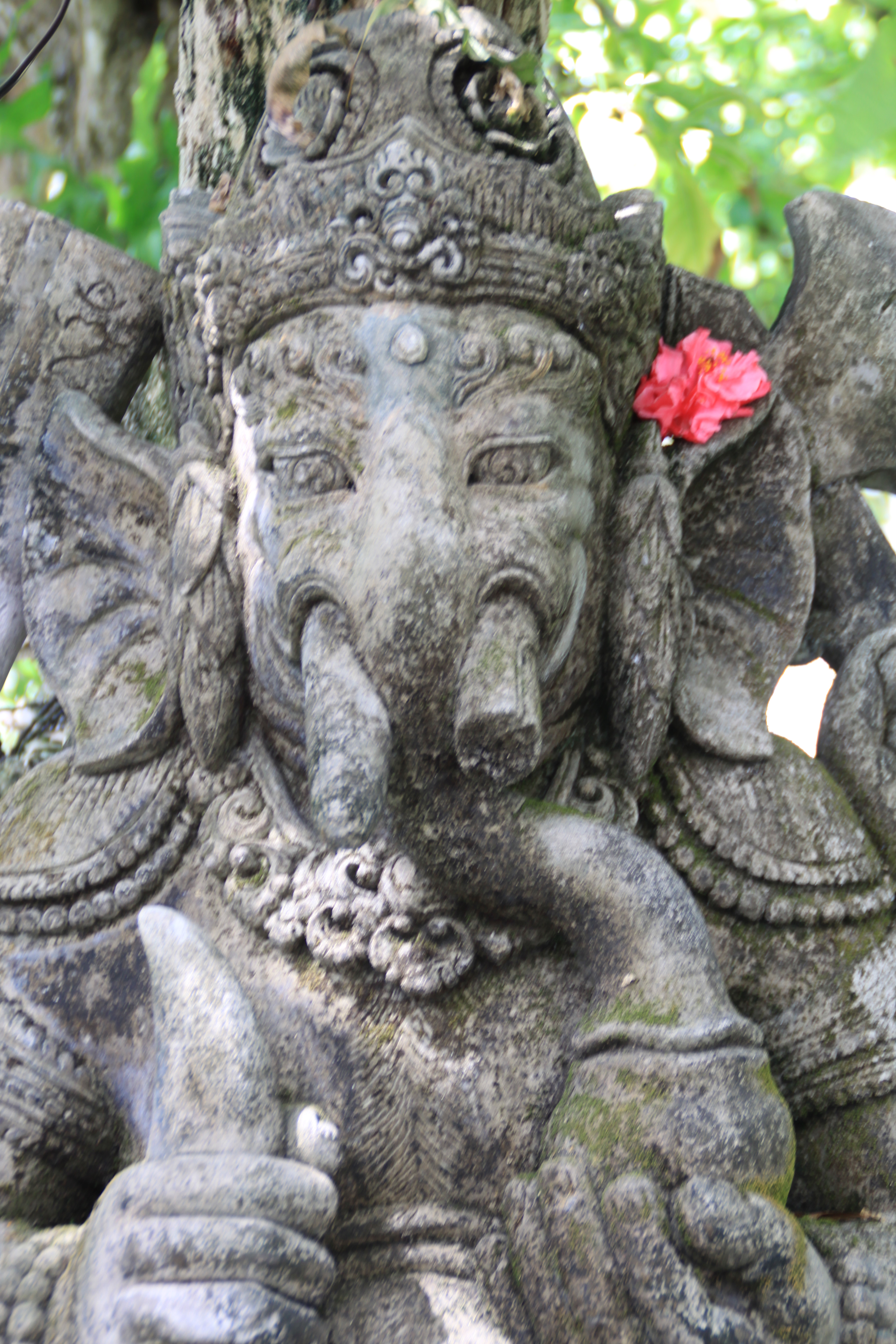 Anyway… Ganesha is said to be the master of many thing. Most importantly as the God of wisdom, knowledge and new beginnings + he is the remover of obstacles. Kind of a cool role to play. All of my friends constantly linking to the Facebook group IFuckingLoveScience should dig this. As the patron of arts and science he is one of the top dogs in Hinduism here in Bali. Since he is the God of new beginnings he is often honored in the start of rituals in the temples. The lady we bought the stone figures from said he HAD to be worshiped first. If he did not give his blessing, then the blessings from Vishnu or other gods would not reach you.