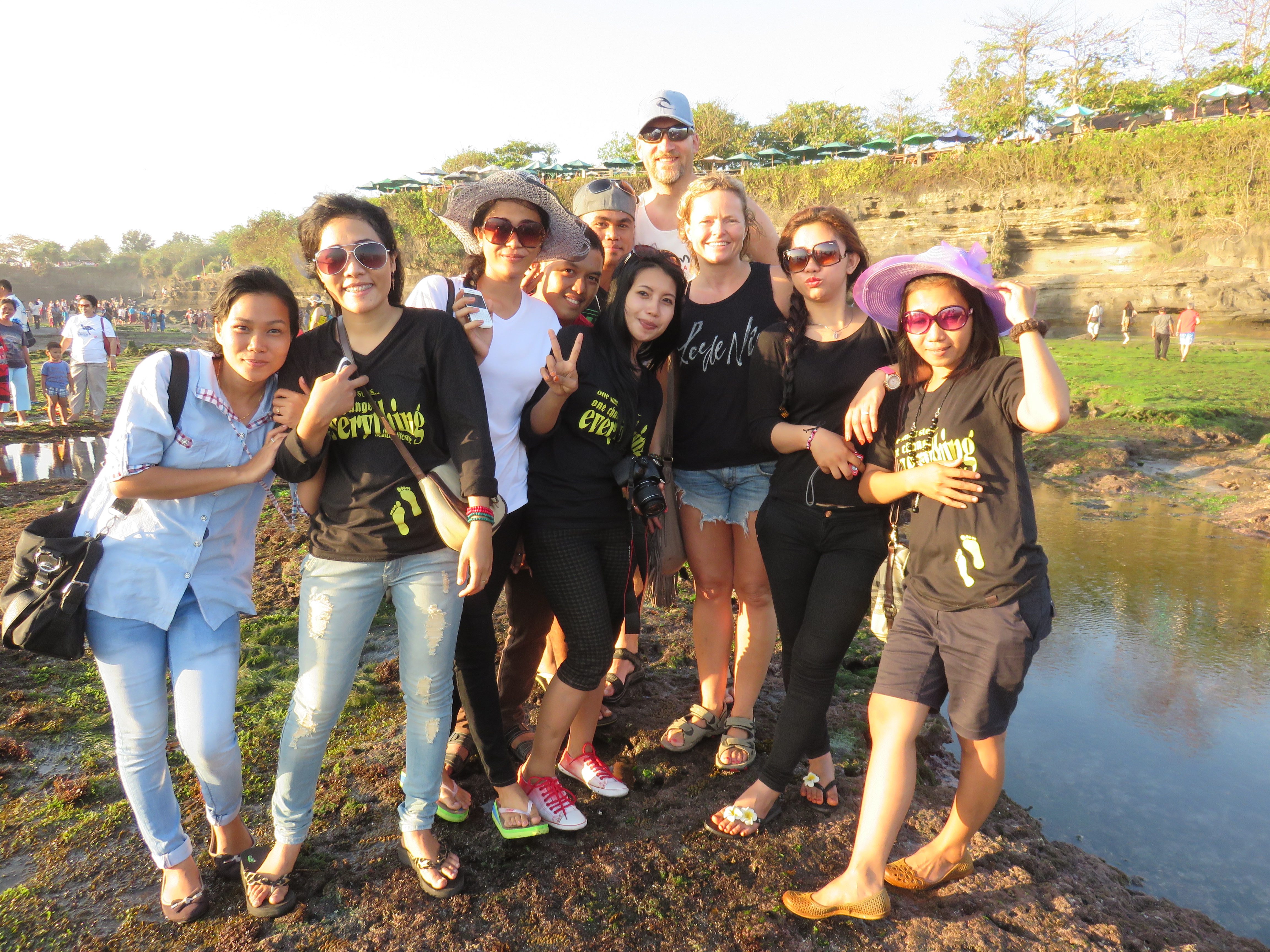 We constantly experience situations that we just have to “go with the flow” to handle. Today a girl came to Katja and asked if she could take a picture. Katja of course took the camera and were ready to help. But, no. It was us they wanted pictures of. So there we are in a photo album / Facebook page with 5 or 6 people we know nothing about. At least we had the brains to get a picture of this group ourselves this time. So now are these strangers a part of our blog to. Tit for tat.