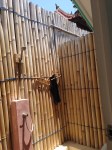 The place Katja (yes I blame her) has booked for us is called a Beach Box. It’s a one room hut with an outdoor bathroom. It has room for one bed, approximately 50 cm on each side of the bed, and a fan directed at the bed. The space in the outdoor bathroom is huge, compared to the room itself. And by the way, the outdoor bathroom must in no way be compared to the Norwegian cabins and their toilet huts. We just love the place.