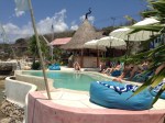 We are not staying on Nusa Lembongan, but on Nusa Ceningan. A smaller island connected to Lembongan by a suspension bridge. This bridge is not meant for cars, but as we all now know motorbikes go everywhere. So the hotel has two cars, one on each side of the bridge. We carried out bags over and into the other car now the road started to get even worse. We arrived at Le Pirate, shaken not stirred.
