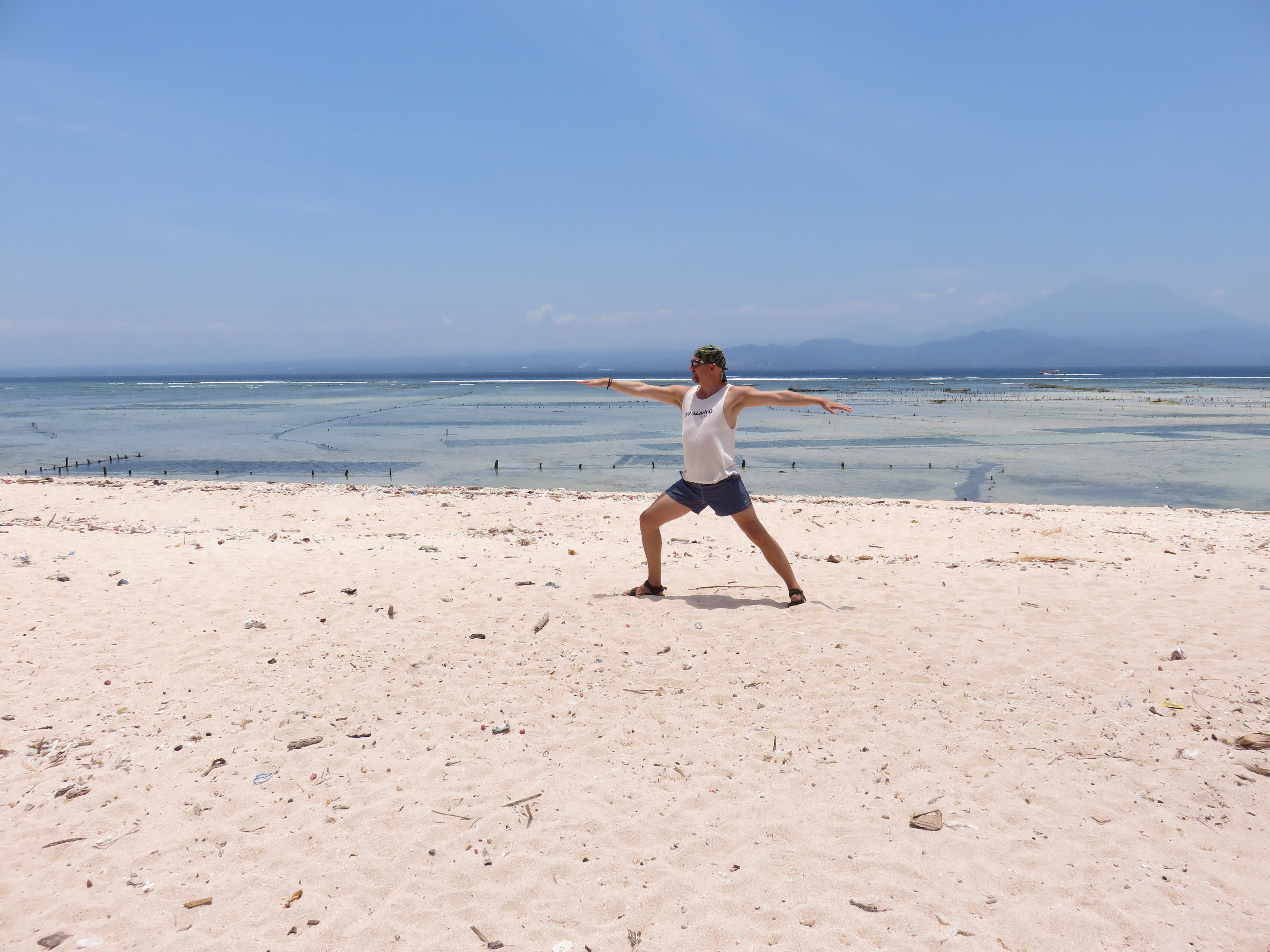 We had talked to August, the manager, yesterday about our need to be on the road at 7:30 to get to the yoga shack in time for the morning session. They were preparing the breakfast buffet as we say there waiting, but they produced a plate of egg and bacon for the both of us, just to be nice. That made us just in time for departure at 7:30 and we set the course back to Lembongan. It is