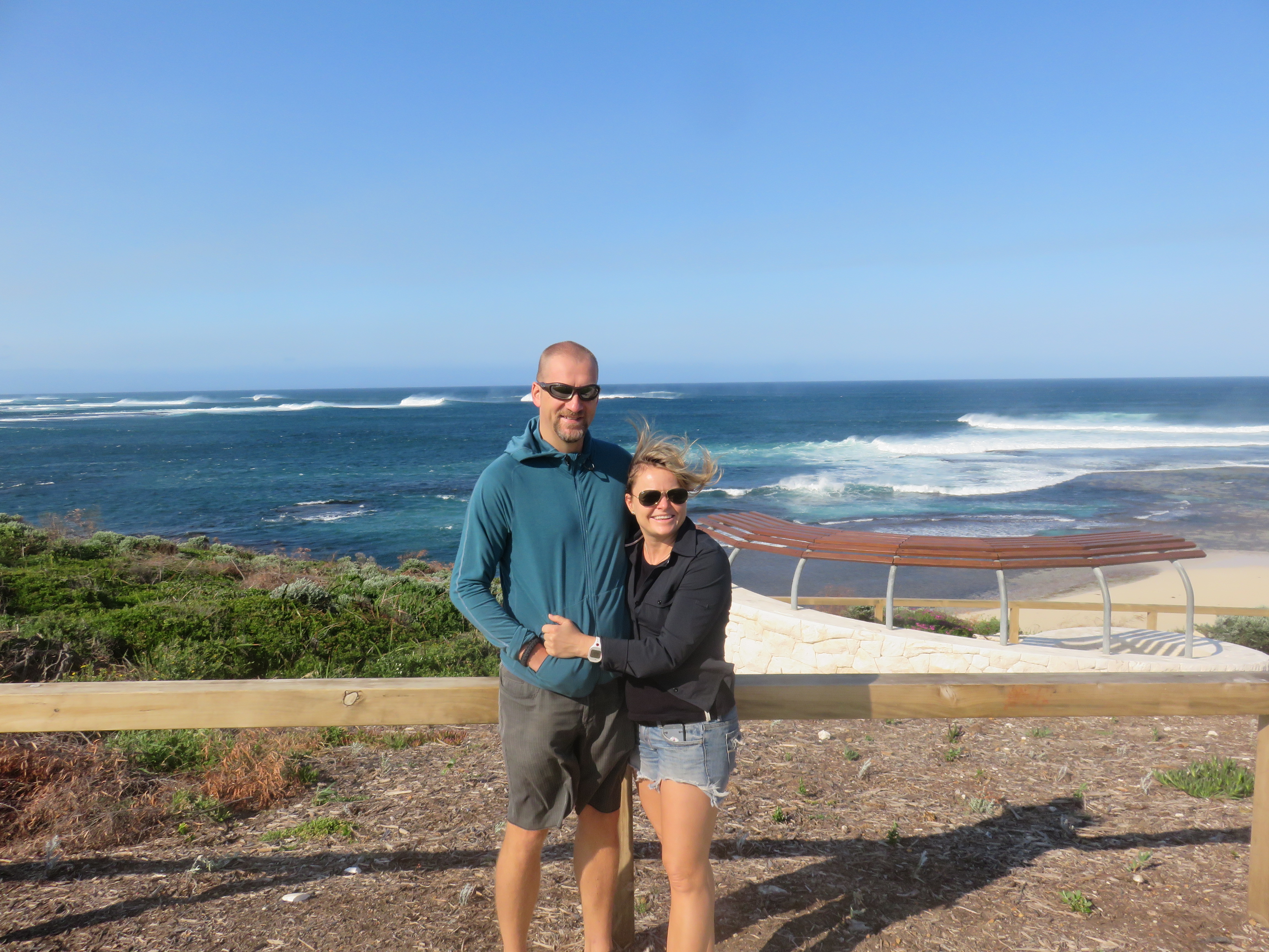 Before we set course for the tree tops we drove due west and looked at the ocean at Prevelly. There are great surfs around here and we went to take a look at them. The drive was easy and with little traffic around. A mantra that would last out the day. The surfs were great, but the wind was heavy and it was quite chilly to walk out there. We took our mandatory photos and moved on in direction of coffee.