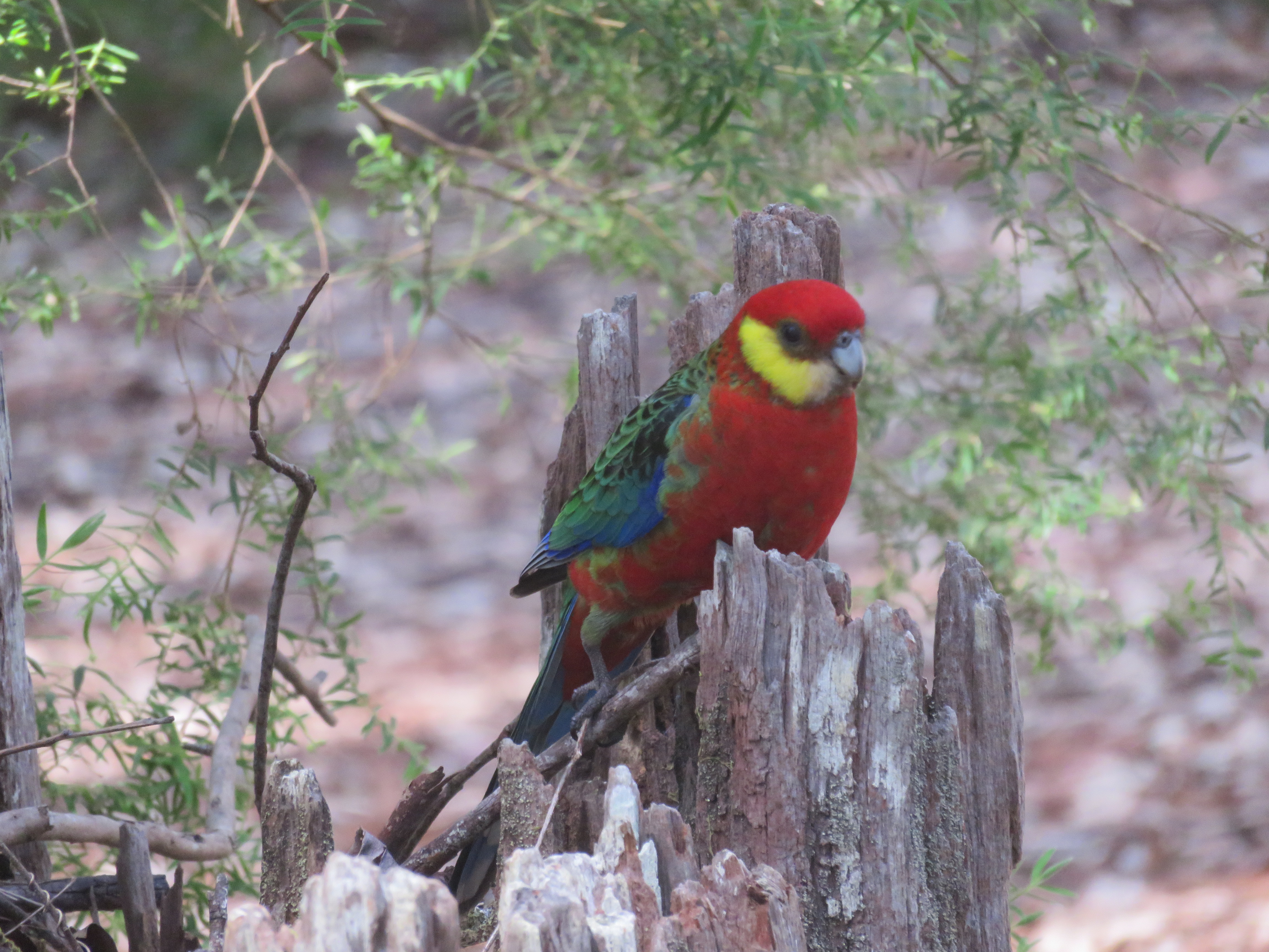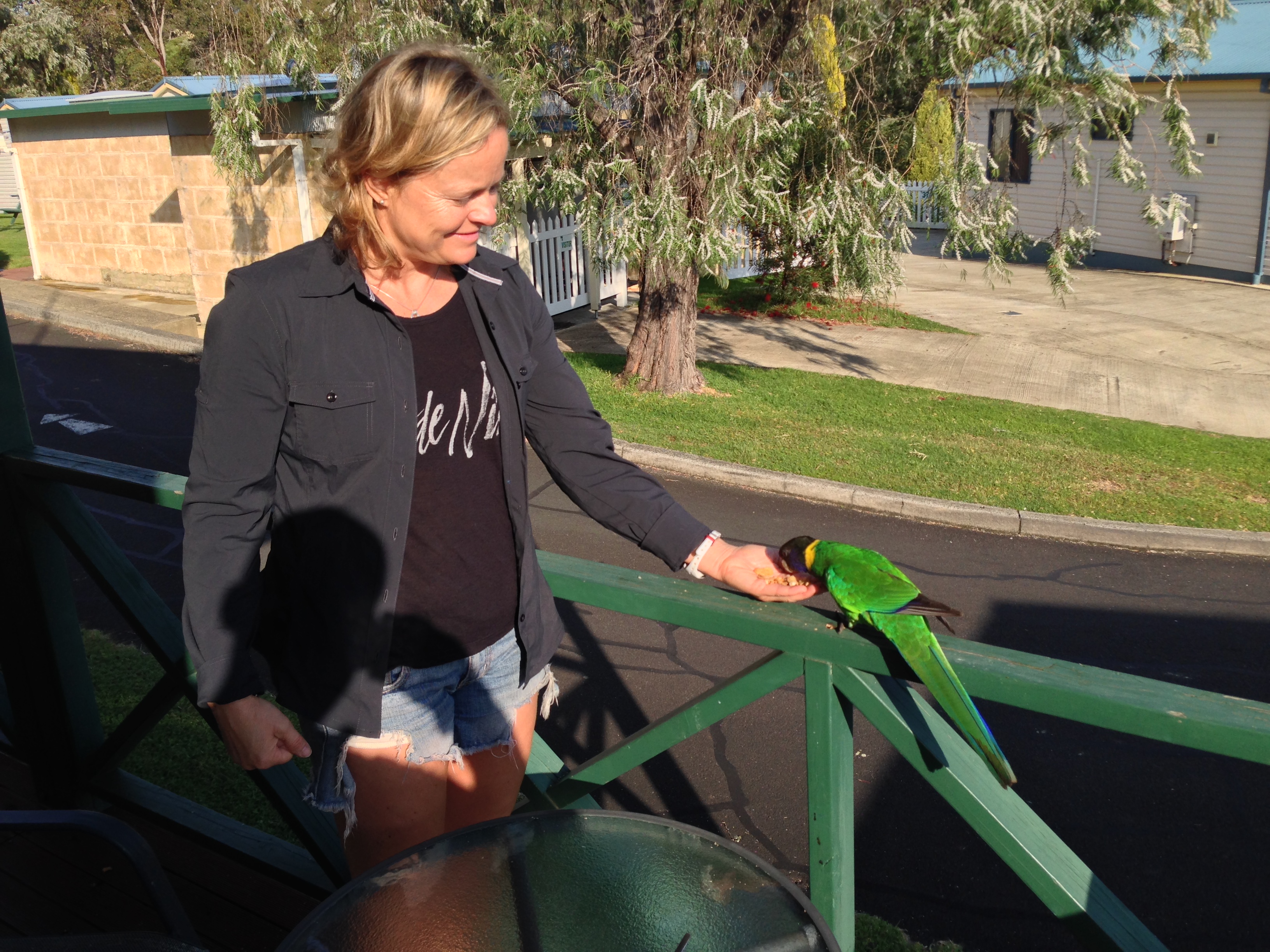 As we waited a few minutes before driving along we got company of a lot of parrots. Different sizes and colors. They live in the wild and it would be wrong to feed them. But being so close to these birds is just amazing.