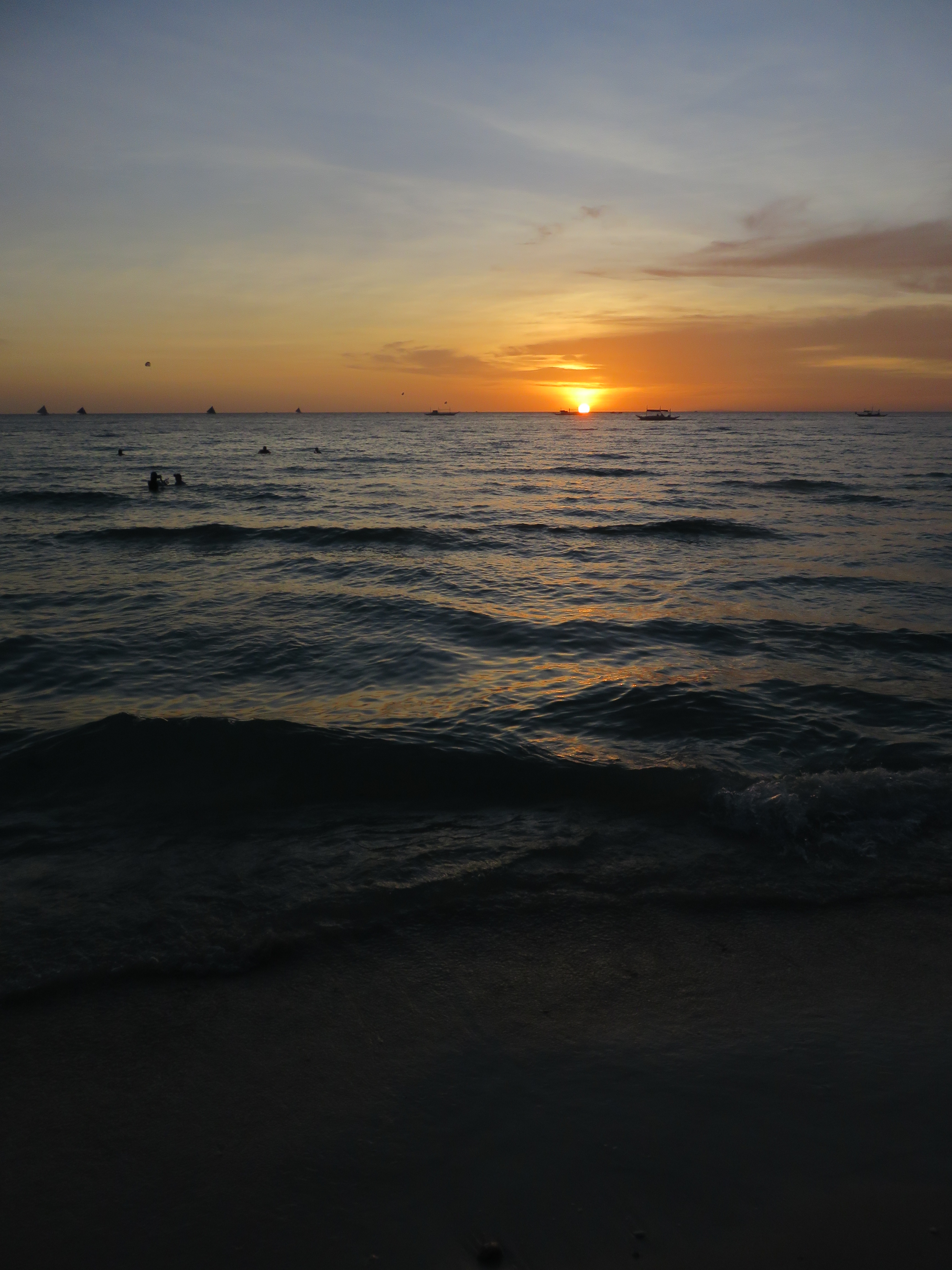 We went down to the beach to see the sunset, and were not disappointed. It was beautiful. It was hard to get pictures that don’t include Asian people or other people’s selfie poles, but we tried.