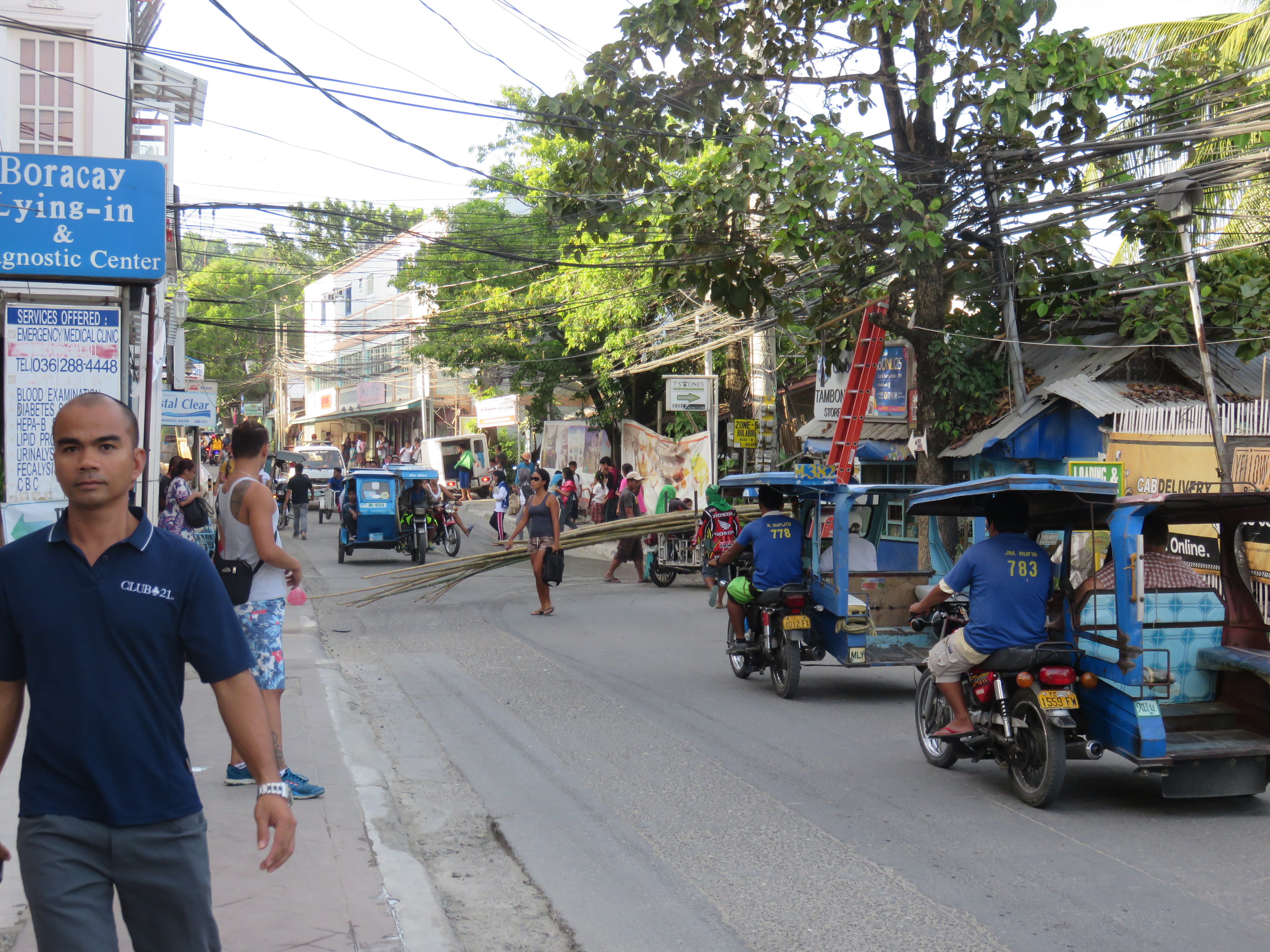 Up and about for another day at what must be paradise. The longer we stay here at Boracay the more we enjoy it and want to stay on. As we stepped out on our way this morning the janitors had taken out the old X-mas tree and started the assembly. Hard to find good Pine trees around here.