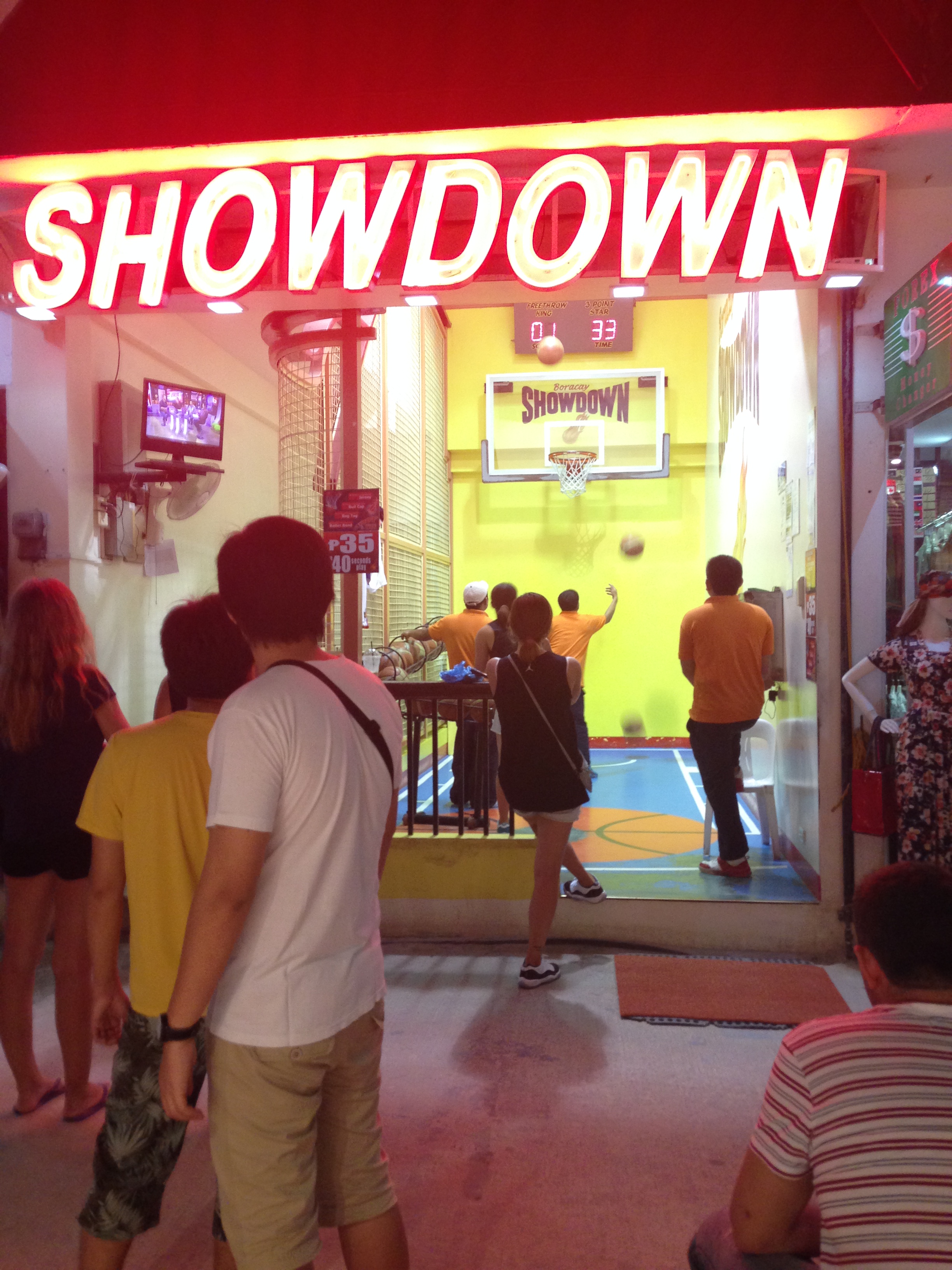 The first night here I was prett upset about a car that constantly was honking it’s horn. All through the evening and into the night the horn would blast with relatively constant intervals. Turns out it’s the sound for the “Out of time” when you play at Showdown. A basketball game down the street from our hotel.