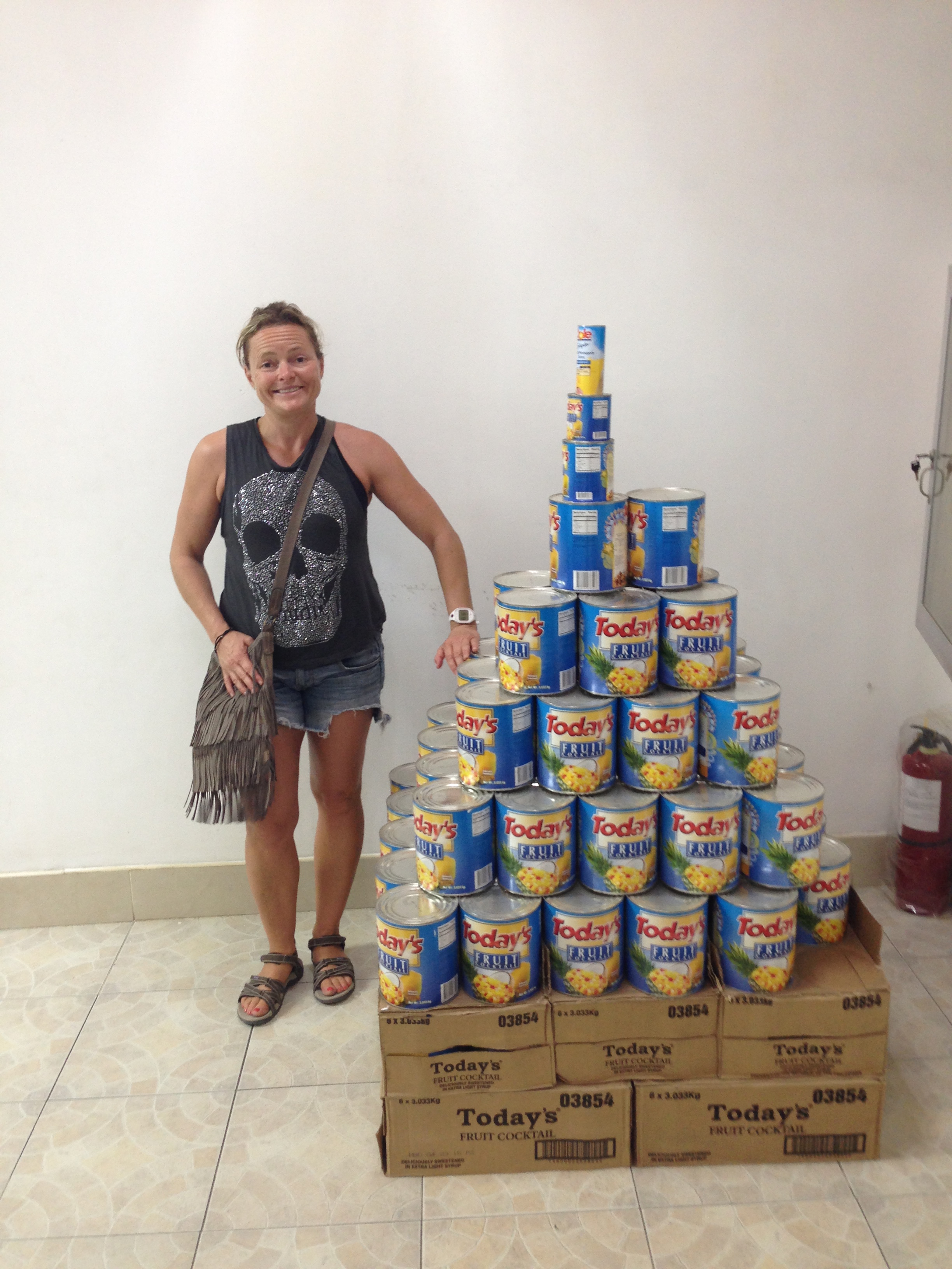 And we came across a big stack of canned fruit salad, that Katja thought were made out of big cans.