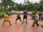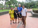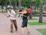 Katja slept all the way down to Manila and felt better when waking up. We met Gerald at the entrance to the airport and instantly got a new friend. He had organized a taxi for us (a friend of the friend who drives taxi) and we set a course for the hotel. Well installed we quickly changed into training gear and headed down again. We grabbed lunch at Hooters, which was a huge disappointment. (Not the hooters but the food.) From there we took a taxi to Luneta park to train some Arnis (Kali/Escrima) with Grandmaster (GM) Henry Espera in “Rapido realisimo”. It was just awesome! I had the Grandmaster personally teaching me drills in stick work, and then more conceptual empty hand with Katja and me. Katja got a lot of work done with Fernando “the Librarian”. A nickname he has gotten because he remember all drills and pair works. GM Espera has a lot of cool concepts I look forward to applying on friends when I get back.