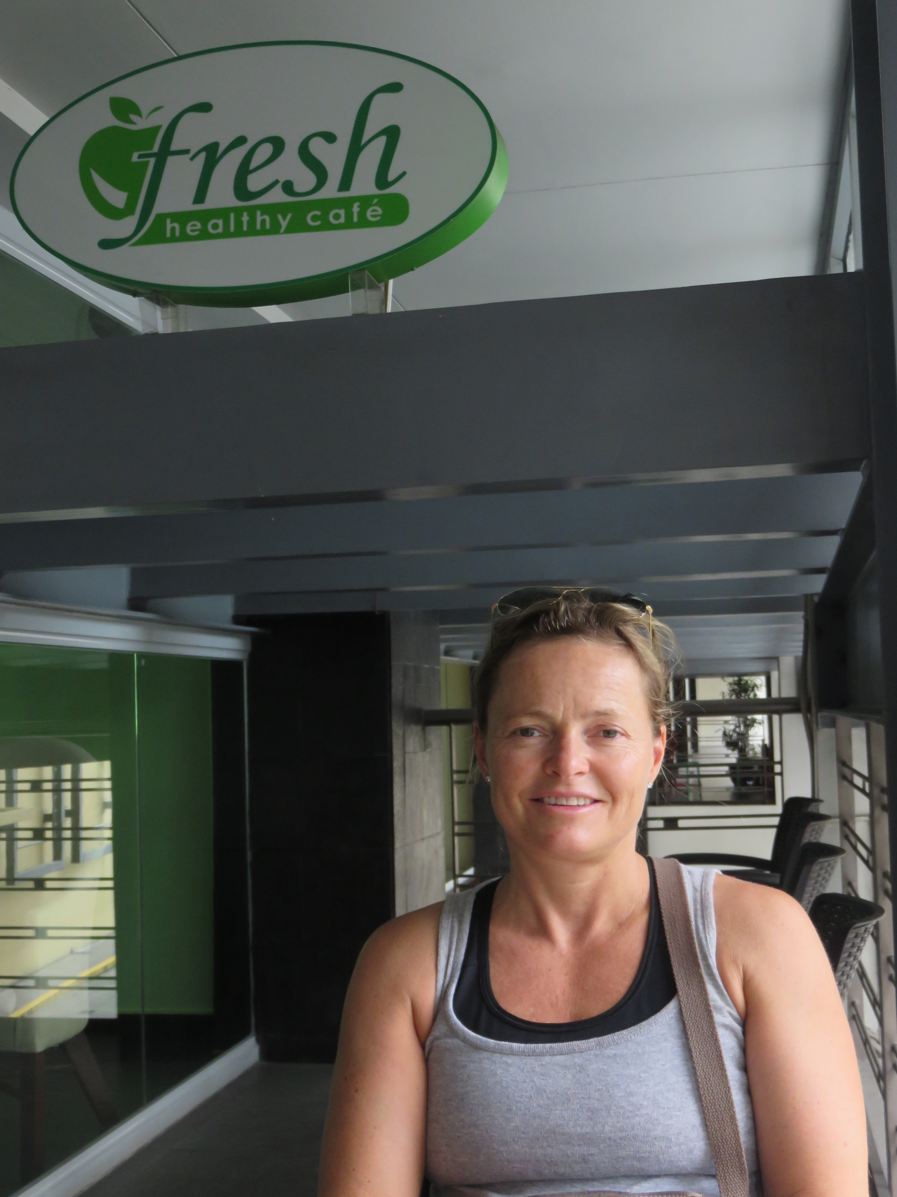 We got out at around 15:00 to get some lunch. In out building is a cafe called Fresh healthy cafe. We went there and got a great salad and good juice. Katja was happy and as we all now know: “Happy wife, happy life”.