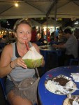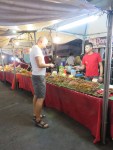 Right outside the hotel is a little market. We are in a safe and nice part of Manila and went outside for dinner. We decided to check out the market first. I’m really glad we did. It included a food market where we bought dinner. Lots of different stalls to choose food from. As I waited for mine to be grilled I asked about one of the other dishes displayed. “Chicken intestines”. OK, maybe another time. There were a lot of people eating it at the tables so I guess it’s both safe and delicious, but I have to be in the right mood to do it.