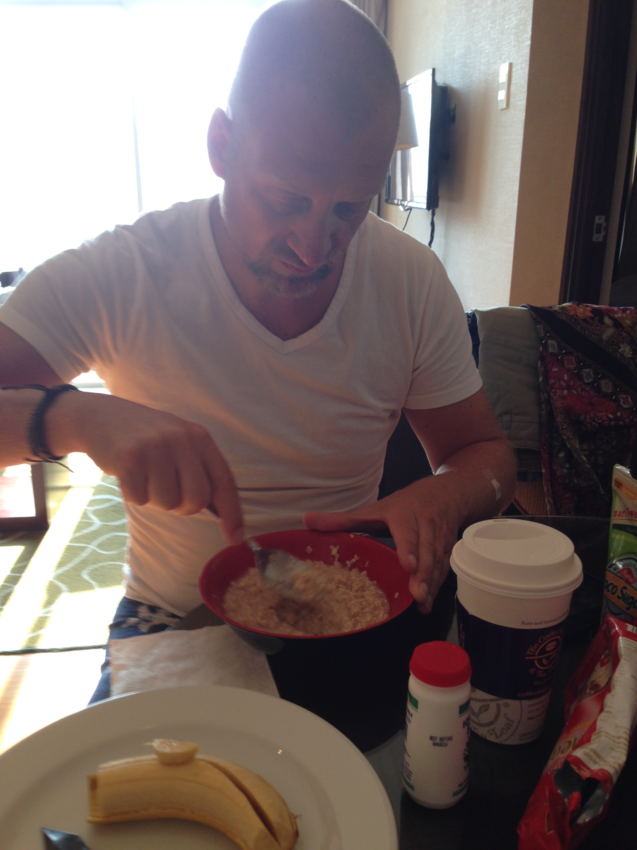 We did breakfast in the room with oatmeal and banana. Quite good and very nice compared to all the white bread they serve around here.