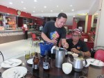 Our personal hygienic standards have been challenge several time during this trip. The park trainings and later eating and drinking without showering first was strange at first. But it is common around here. You dry up, change cloths and go out in the world. There is no one here that smells bad, so with clean clothes this works. Now, with 10 hours since we were soaking wet of sweat in the park do we get to hang our training cloths to dry. It’s also the first opportunity to wash our feet and to clean the armpits since this morning. In between I have numerous times been sweaty and it will now be a wonderful feeling to strip down and take a shower. We got up at 5:30 this morning, and will soon crash to bed to exhausted to do anything but sleep.
