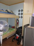 In the third story of GM’s house is a gym. Directly connected to this is a bedroom with a bunk bed and a bathroom. A German guy stayed here for a year, so it’s gonna be fine for us for the days we spend here. We have aircon and a fan, we got a fridge to cool water and store fruits, and we got a whole gym for ourselves. This is gonna be great.