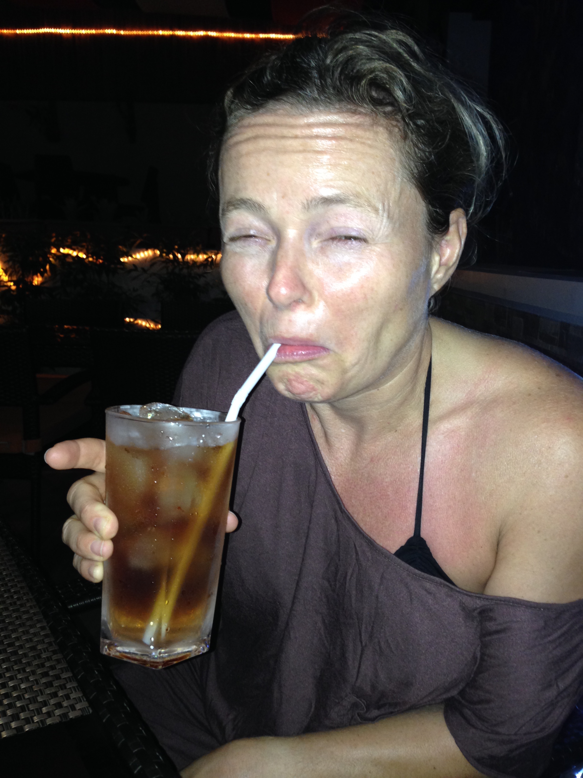 As the night closes in its only one more thing with mentioning. We ordered drinks before dinner. We should not have done that. Bartending is an art and around here it’s more likely to get a cold beer than a decent drink. Katja ordered a Long Island ice tea which tastes like hard liquor and water. My Strawberry Daiquiri tastes like booze with a little fake fruit syrup in it. Not a winner. Well well, we chalk it up to experience and move happily down the road. I’m more happy than Katja, ’cause I drank mine anyway. Hick!