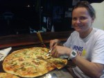 We had planned pizza for dinner and had found a bar that served different food. As Puerto Galera is a divers paradise it’s a lot of d divers in the bars and restaurants here. We grab a table and order our pizza. The price make it look like one pizza is for one person’s, so we’re pretty surprised when they arrive. They’re big enough to feed a village. We smile and start eating. I manage half of mine and get the rest in a doggie bag.
