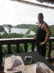 We stop at Viewpoint restaurant for a coffee as we close in on Sabang. A nice view indeed. A Japanese guy asks us to take a picture of him and in return he takes a few of us. All in the spirit of traveling. We grab a quick coffee while enjoying the view before riding the last km to town.