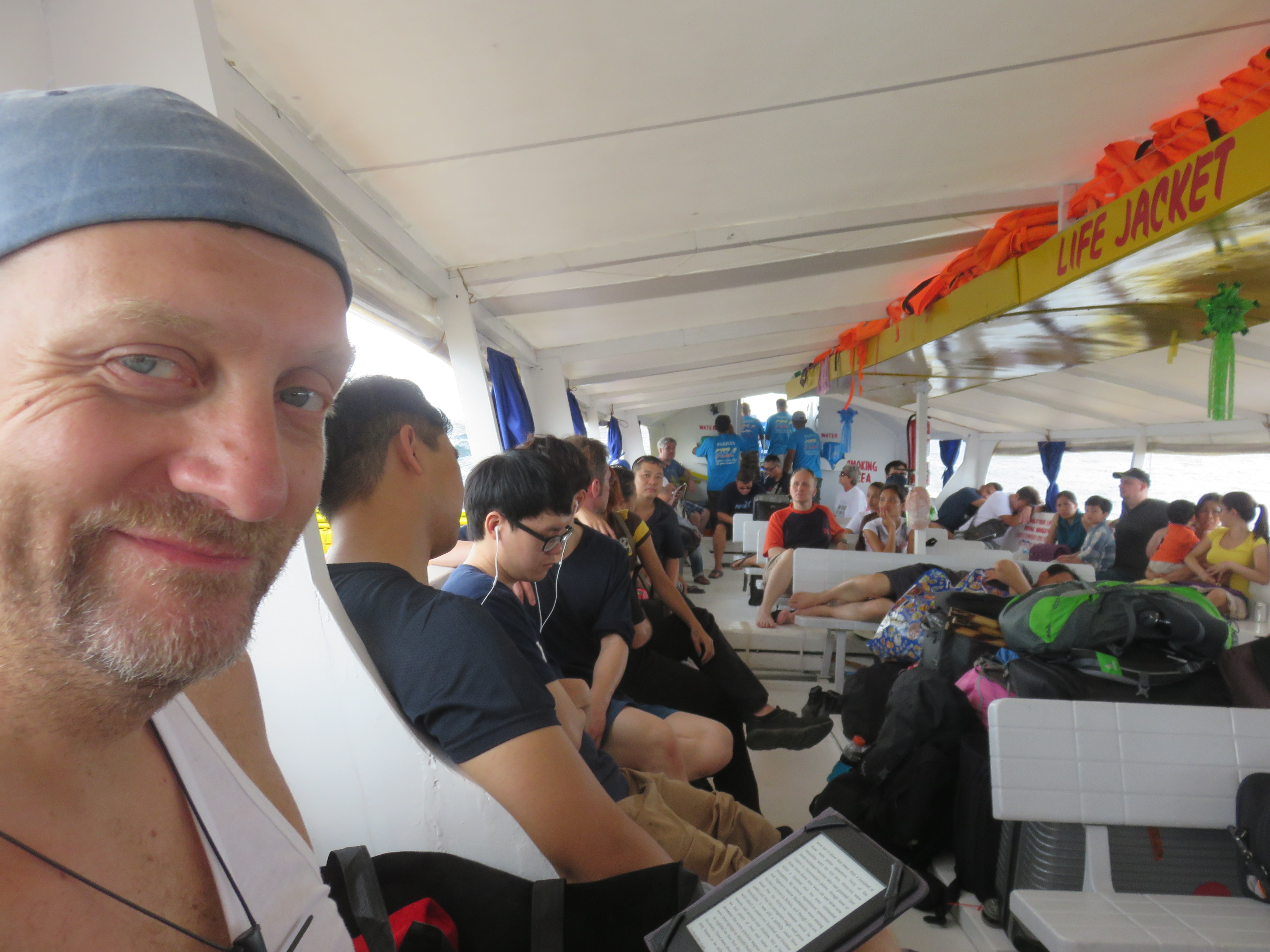 As the pictures show a lot of people are leaving here on this boat. We got our name on the manifest and paid our tickets, and boarded the boat as the last two. A reference to Noah’s ark right there.