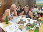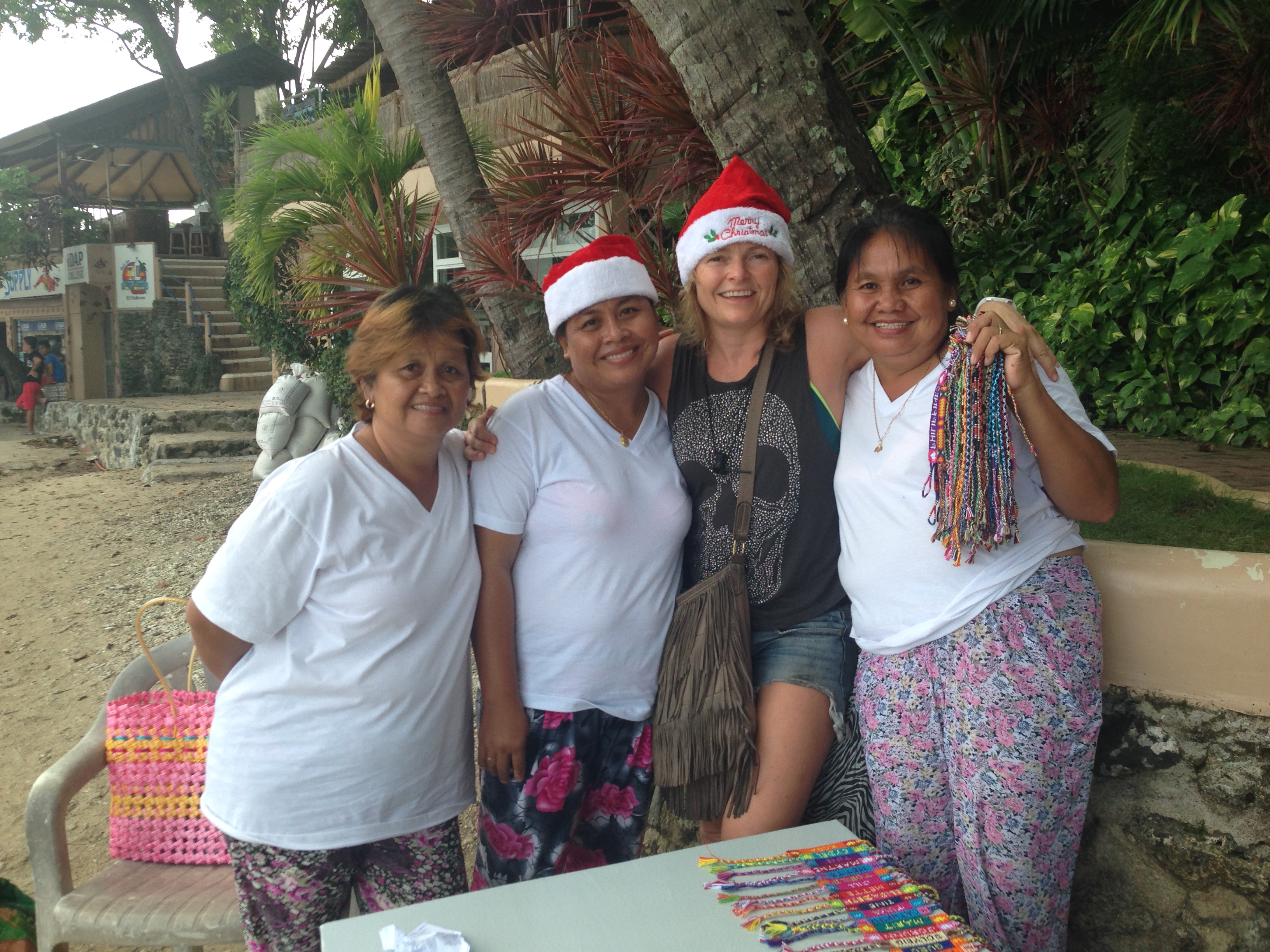 Since Cydel has been so nice as to look after the big bags, we are traveling very light. We paid our bill and got on the boat with James and got shipped to the ferry. Katja needed to get a picture with the ladies that made all the wrist bands, and almost missed the boat.