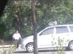Then we sat stuck in traffic for another half hour, did a wrong turn that cost us another ten minutes, and then the driver said something unintelligible and bolted out of the car. We stood in a four lane street and he crossed the oncoming two lanes and jumped into the bushes. He needed to pee, obviously bad enough to keep the traffic waiting while business was being done. This is probably the only time no one was honking their horn during the whole trip.
