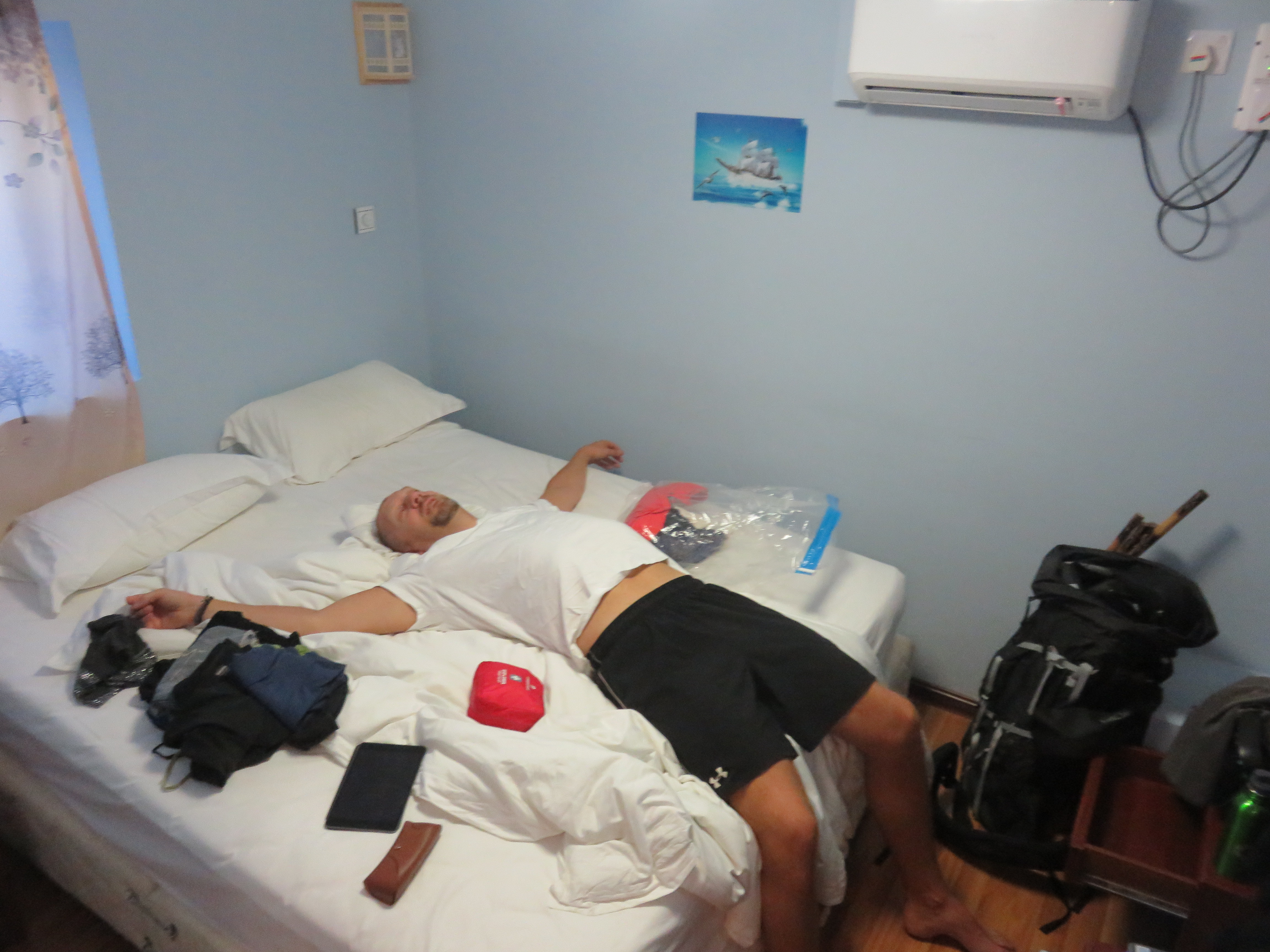 The bed called out for me with last night’s bad sleep and all of this day’s adventures. The bed is firm and nice, I have my own douve and don’t have to share with Mrs GrabAndRoll. This is gonna be good.