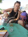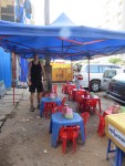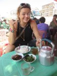 We almost pass a tea salon with the miniature plastic chairs and tables. We have the time and sit down and ask for tea. They have these huge cans of tea, and then pour over into smaller serving cans. This makes the tea nicely temperate d and you can set the pots directly on the plastic table. The are lots of locals here and only us as tourists. It seems we are a great entertainment for them.