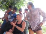 The flight leaves at 15:00 so wet have plenty of time. So Katja suggests we go down to the river and see if there is anything to see there. This town is, as I guess any developing country is, filled with opposites. The new mobile phones, BMW and Mercedes’, ATM’S and coffee bars on one side. On the other you’ll find the broken down but still running tricycles, the food stalls, the markings they bare on they’re faces, the tea salons and the manual labor.