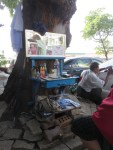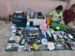 Pack, check out, leave the big bags at the hotel and leave only with the small day-packs for the next week. We walk a bit and look at the salesmen at the street. Old tools, broken phones, chargers to about any mobile phone every made, books, clothes- used and new, Buddha figures and the classic waving cat.
