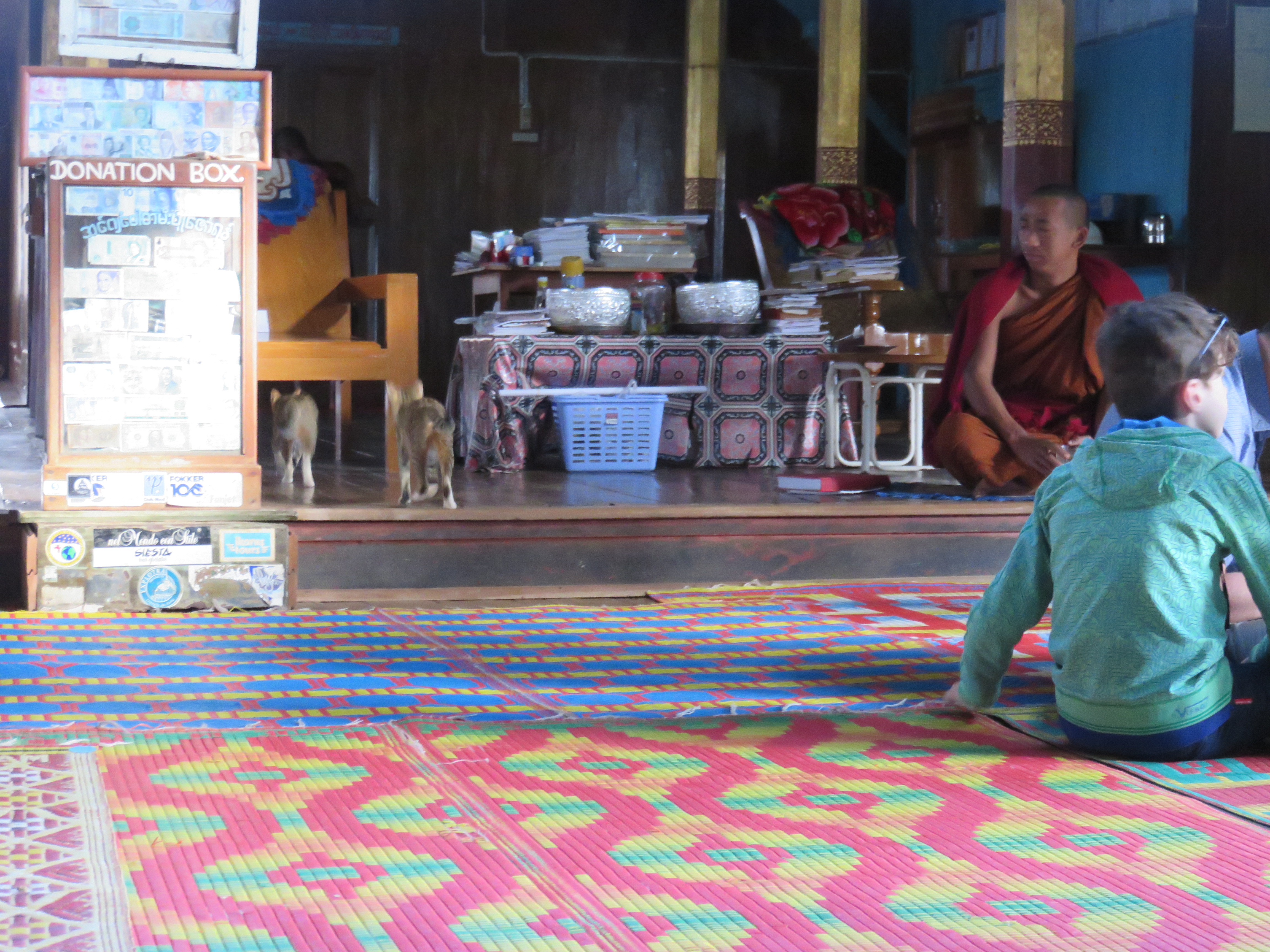 We got him to take us to the monastery with the jumping cats, where the cats don’t jump any more. It was a nice monastery with some great pictures of Buddah’s life and road to enlightenment, and some cats. The sun, fresh air and monotonous sound of the engine on the boat was starting to get to all of us and we walked a bit like zombies around in there. Back on the boat and straight back to town.