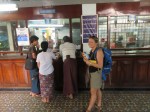 Next stop is the post office and we walk and walk along the streets between street vendors, monks, kids and elders. We enter a building that looks like a post office, but when we ask people they shy away like we’re the devil. Finally a man granted us mercy and explain it’s down the street, not here. Well down the street we find the post office and we get to buy a few stamps, but send a package? No, that is a job for the central post office. OK, and thanks a lot.