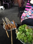 We ordered different dishes again so wet could share. The fresh spring rolls are constantly changing from place to place we eat then, but they taste really good. We also got served some green salad that included something that probably grows on the water somewhere, morning glory we think it’s called. It was extremely full of taste, and that taste was rather bitter. Not to my liking at all, more of an acquired taste I guess.