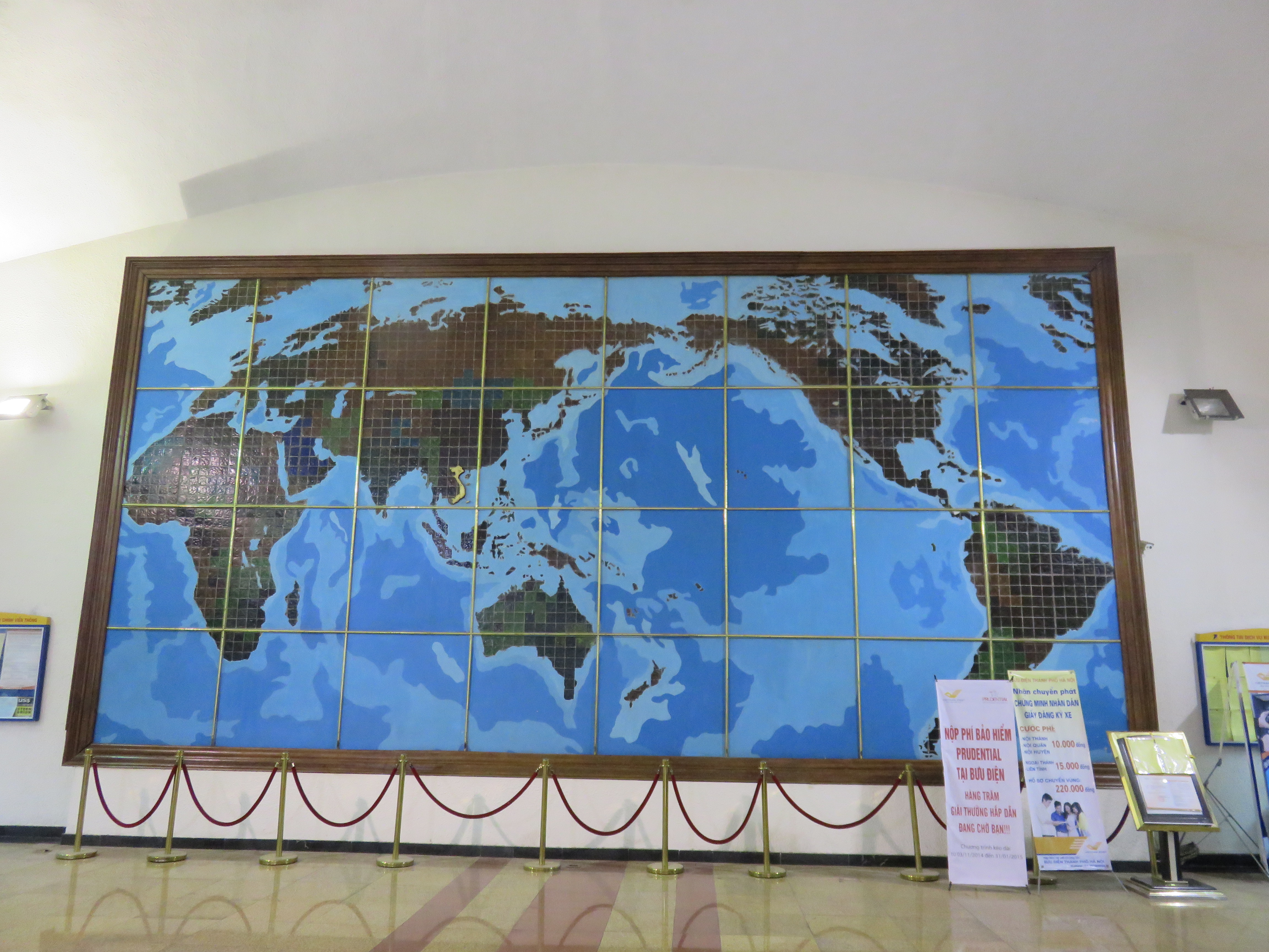 A map of the world, but with a different placement than we are used to back home. It was on the wall in the Central Post Office
