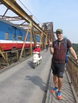 We walked out to the middle of the bridge and were lucky enough to have a train run by. It gave a extra tickling feeling when the vibration from the train hit us. The bridge is otherwise heavily used by motorcyclists to cross over the Red river.