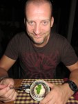 We ended a perfect day with a perfect dinner at Mahob restaurant. It’s the same owners as this hotel and it’s just around the corner. Literally. They serve beef, which we haven’t had in some time, a lot cheaper than in the Philippines and in Vietnam. We got served a raw piece of meat (tenderloin for me, rib eye for Katja) on hot stones. Like four hundred degrees hot stones. So the meat fries on the table and you can make your own choice of how well done you’ll have it. Or do like me and eat it from raw ’til you’re done – whatever that’s called. The beef was so tender it melted on the tongue. It may be the best beef we’ve ever had.