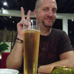 - Drinking Angkor beer