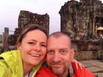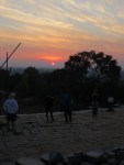 We drive on and immediately get stopped for ticket control. This is absolutely more manual as they punch a hole in the ticket for today’s date. Seven days within on month it’s the rule. We sped up to get to the the temple called Phnom Bakheng in time for the sunrise. It’s still dark and we struggle a little regarding parking until we disregard the no parking signs and leave the motorcycle behind. We power walk up the hill and get to use our flashlights again. Up up up and away. “We need to beware of elephants”, Katja says. I think I might have looked at her like she’s crazy, ’cause I know the look SHE’s giving me. I laugh it off and say there are no elephants here.