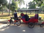 We drive back to the hotel and have breakfast. Anther nice morning with very nice and attentive staff. The food is good, especially the homemade yogurt and fresh fruits. We pack up and check out and our pickup service is right on time. Katja rides in the tuk-tuk while I try to keep up with the motorcycle.