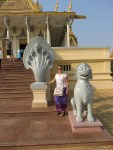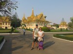 Our tuk-tuk driver speaks decent English and we ask him to wait at the new hotel add takes us to the Royal palace. Before dropping us off there we agree to use him as our transport to the killing fields tomorrow. When that’s settled we go into the palace.