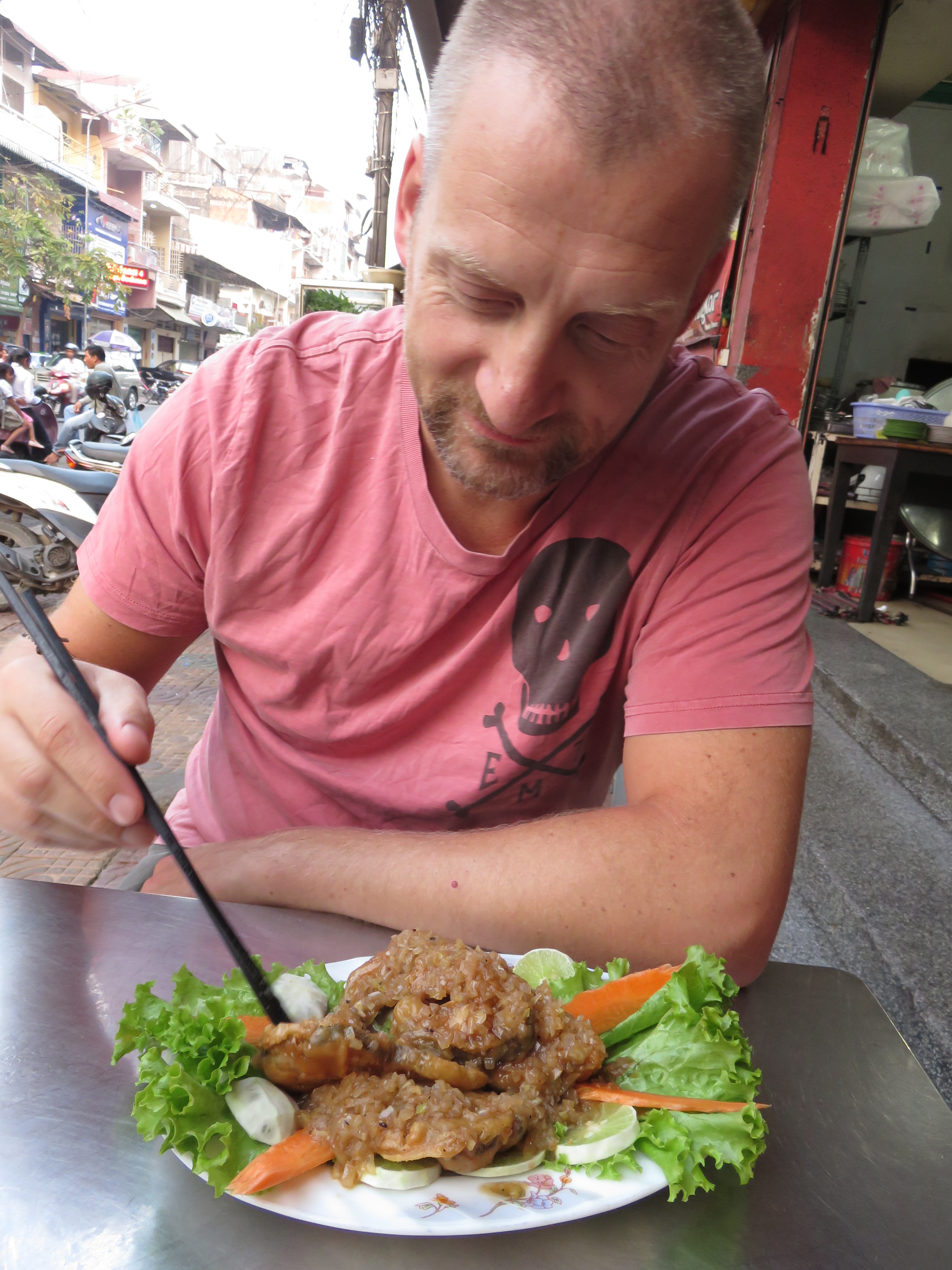 We walked through frogs, live hens, fly ridden meat, fresh fish, fruit and a while lot more and emerged not far from our hotel. Hopefully we’ll sleep better tonight and gather some energy before seeing the horror of the killing fields tomorrow.