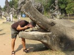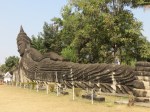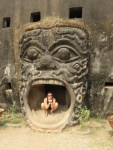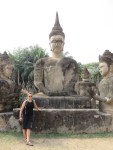 Back down on the ground we walk among the sculptures and enjoy the sights. Some are really beautiful, others clearly fusion between Hindu and Buddhist. We take lots of pictures and when finished step out the gate to look for the bus.