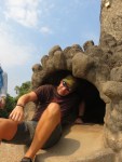 The park is super cool! It starts with a pumpkin like structure that is large enough to climb into and that has three stories with sculptures inside before you emerge on the roof. The “doors” and stairs are built for a small Asian guy. I mean that literally. Not a normal Asian, but a small one. Getting my huge frame through these holes made for a lot of laughter and snickering. Outside on the roof we got a great view of the park. It’s bit large, but filled with different statues. Some of them are so large it’s ridiculous.