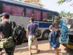 It’s not only us waiting in the lobby. A Korean guy is also there and we speak about the situation while waiting. 10:10 our pickup arrived, but not his. Seconds later his arrives also, and behold! We’re put in the same tuk-tuk to take us to the bus. We didn’t drive 300 meters before we were at the bus. Right, that was worth waiting for.