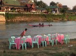 When we arrive in Vang Vieng we’re thirty minutes early. We walk to town and try two places before we found our guesthouse. It is not particular nice, but it seems clean even though there are holes in both the linen and the towels. We go out again immediately and look for green discovery. They arrange a two day trekking tour we want to join.