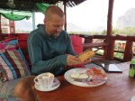 Up early, again, and feeling a lot better. The headache is gone, so is much of the rash. We’re ready for Vang Vieng challenge.