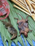 We all get in the back of the car and start by driving to the market. Here the guide, Mr. Ming and the others are buying groceries for the trek, while we take a stroll around and just watch what’s on sale. Most spectacular in that department had to be the squirrel and rat we found.