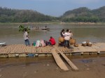 We get back over Mekong in another full boat. It’s not one boat that ferries people over, but several. Still there is only one on the water at the time and it seems there is a system for alternating who’s turn it is. Just as we’re about to board the boat the rain starts to fall. Not willing to be stuck on the wrong side of the river in a heavy rain we take our chance on the boat.