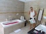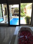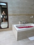 The places is just wonderful. We have been lucky enough to live some nights in fancy places on this tour, but this is the best yet. When I say private pool I mean private since we can close and lock the door to ensure privacy to our garden. We also found the bathtub filled with water and floating with rose petals. Sweet.
