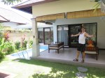 Our “room” was ready so we got to take our bags and move in. Right, “room”. We have our own villa with a large outdoor patio, big bedroom and an almost as large bathroom. Add to it that we got our own private pool and a day bed and you get the picture. Or maybe you don’t, so we put up some pictures.